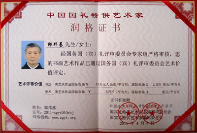 邹邦基 1935年7月生。中科院研究员。承蒙父亲传授从小喜爱诗词书法,文艺界曾受聘于中国名家书画院(名誉院长)、宋庄国际书画院(终身院长)、中国画家协会(理事)、中国文艺协会(理事)、中国国家书画院(副院长)、世界教科组织联合协会(名誉主席及首席艺术家)、英国皇家艺术研究院(荣誉院士及客座教授)、中国诗书画联盟网(名誉主席)等二十余家社团,作品发表于《世界艺术通史》、《世界艺术大师辞典》、《国学大典》、《世界文艺名家大辞典》、《民族国粹·20名顶级艺术大师》、《东方艺术之巅·中国艺术六大名家》、《中国艺术百年》、《中国诗书画档案》、《中华艺术瑰宝》、《世界艺术百年传世经典》等百余种书刊。获金奖、特等..