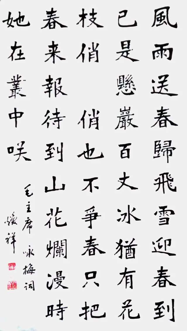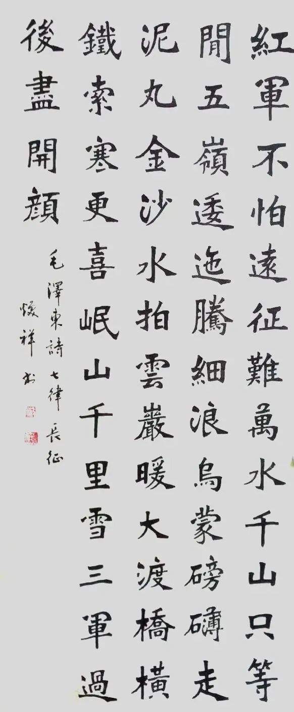 书论有言“楷法无欺”。一位书法家的修养如何,功底如何,只需把楷书作品拿来观鉴,就会一目了然。陈焕祥先生的楷书功夫实属上乘!极有楷精法详,特别真正的精气神。其楷书之法度,取法颜筋柳骨,参意欧楷险笔,写一侧笔如鸟飞仪生动,写一勒笔可以急去缓回,努笔有曲势,啄笔很生动,八法之功,样样精通,挥斥方遒,正大气象!
