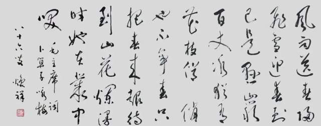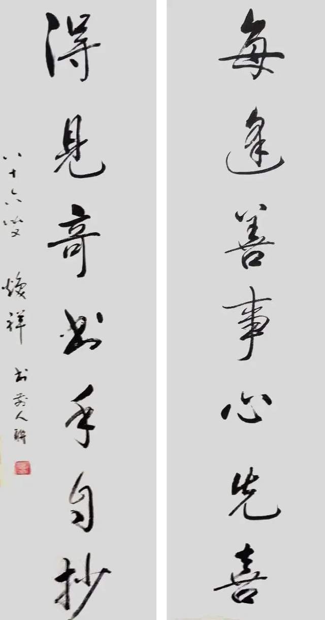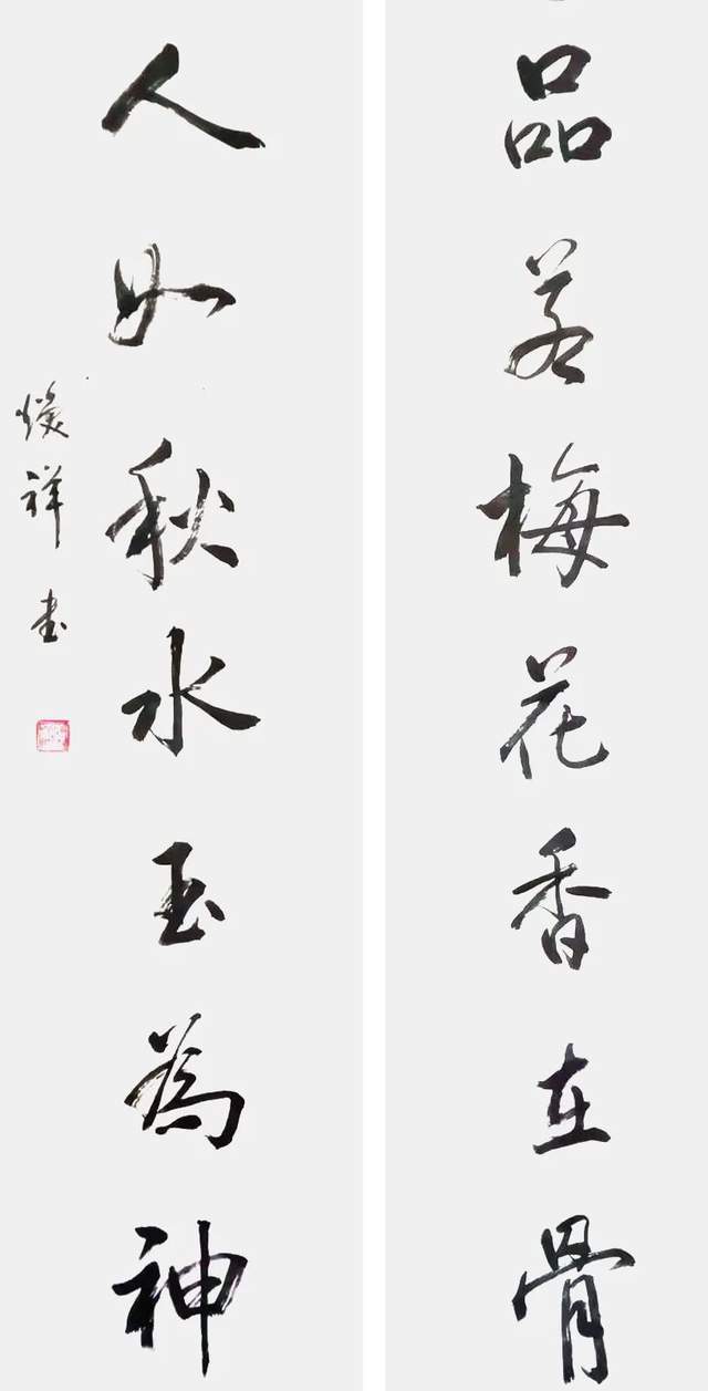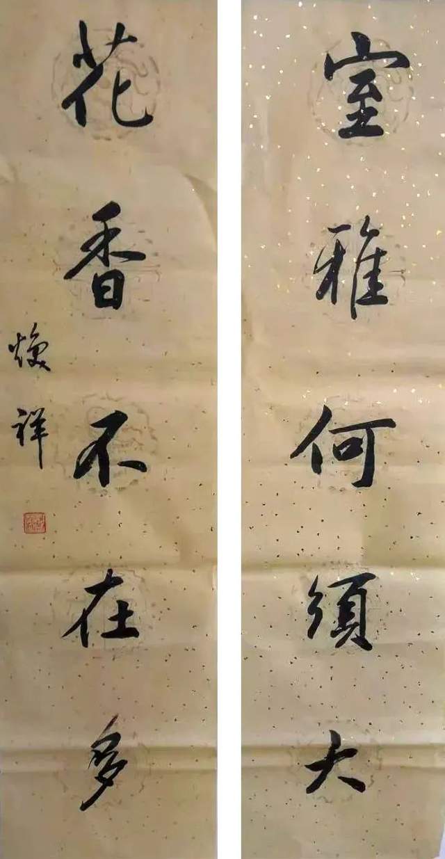 深师碑帖写翰墨,气韵生动作丹青。再转观陈焕祥先生的行草作品,很有文人书法的儒雅气质,纤丝映带,上下翻飞,如虬龙蜿蜒,似鸾凤徘徊,可以在一划之间变起伏于锋杪,也能够在一点之内殊衄挫于毫芒,飘风骤雨惊竦竦,落花飞雪何茫茫。文人书法精益求精,以正宗的笔法介入丹青创作,就可以以书入画,创作牡丹、梅花、风竹最有骨法用笔的精气神,通过夺物象之精神,掠物象之体貌,为万物张目,为生灵传神!此丹青挂在上堂大厅,实属雅俗共赏,充满文化的味道。书画皆如其人,唯有贤家德者,才可以让书画同时拥有如此赏心悦目的臻美品质,为书画文化弘扬带来不可估量的力量!