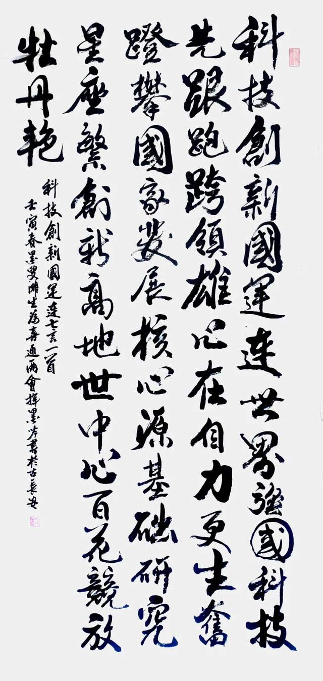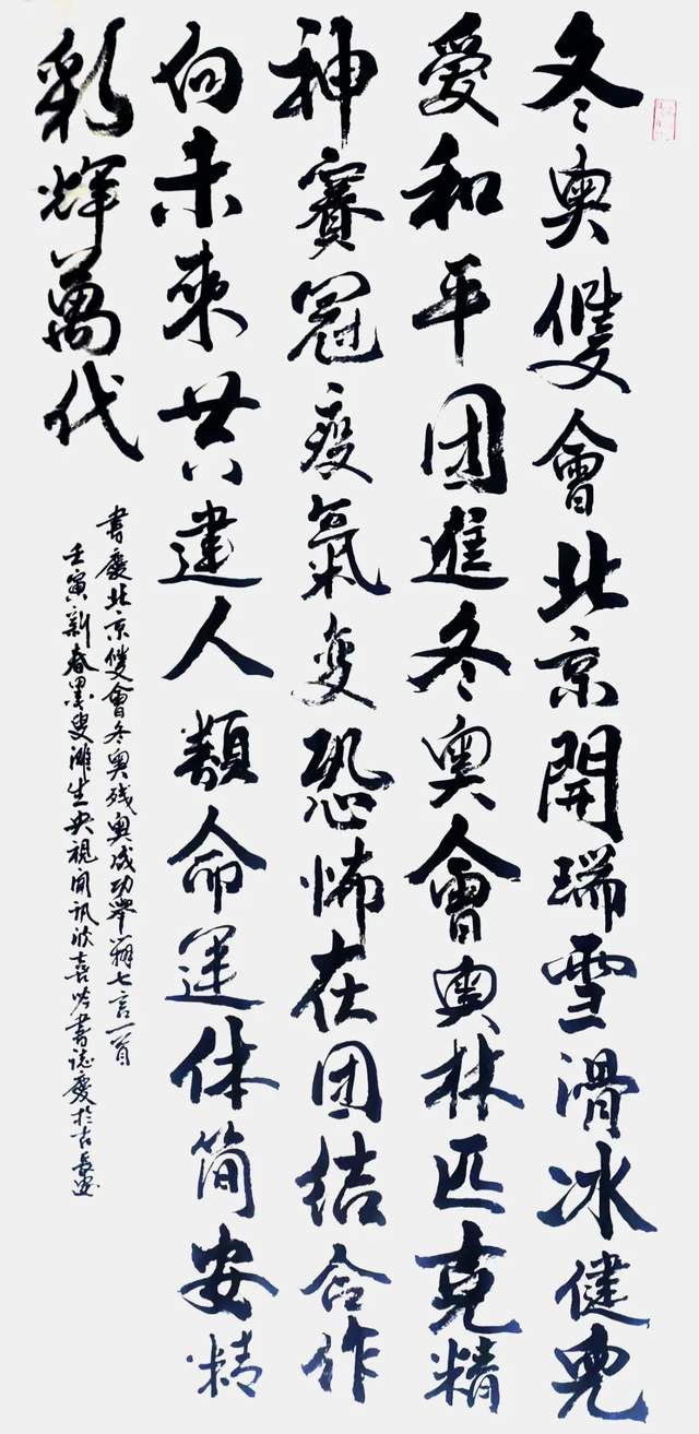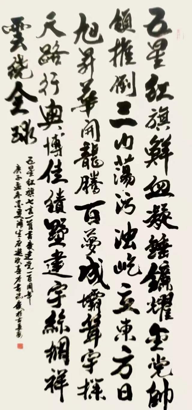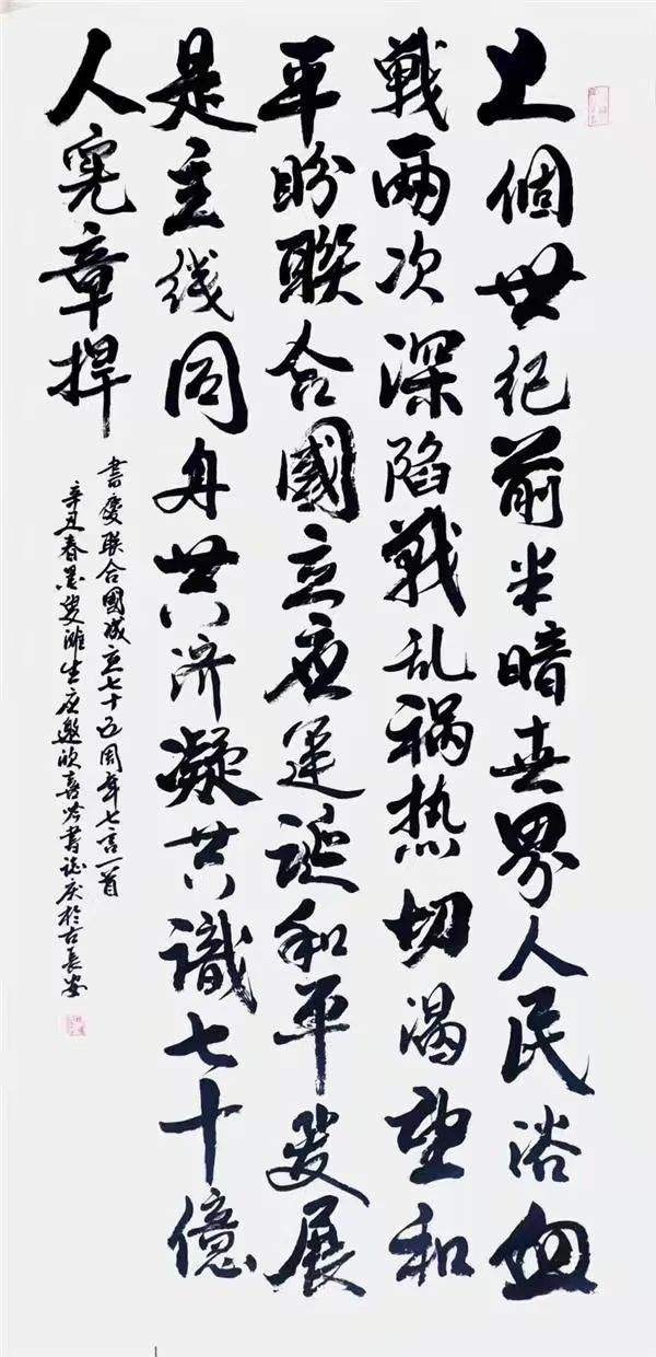 曹衣出水绘丹青,鸿飞兽骇书翰墨。书画同源这是元代书画大家赵子昂的笔墨修养”不但正确而且精确。有的当代艺术家因为心浮气躁的原因,很难有人再功修两门双层造诣。写书法,书家不绘丹青,成为有违传统的流弊。马滩生前辈修丹青数十载得非凡造诣,磨炼数十载,修成造诣非凡。他的书法诸书皆成,又以劲写行草而成卓越,以碑学立骨, 以贴学注韵,挥笔写鸿飞,驱墨拟兽骇,绝岸颓峰,临危据槁,凡是孙过庭书谱所伦的书法意象,他在行草创作中一一得以复观。山水、人物、花鸟三门精湛,诗书画三位一体,挥笔可弘魂,泼墨即扬志,气度磅礴的笔墨才华,正是法贯古今的智巧兼优!