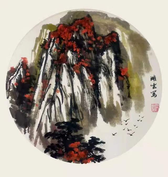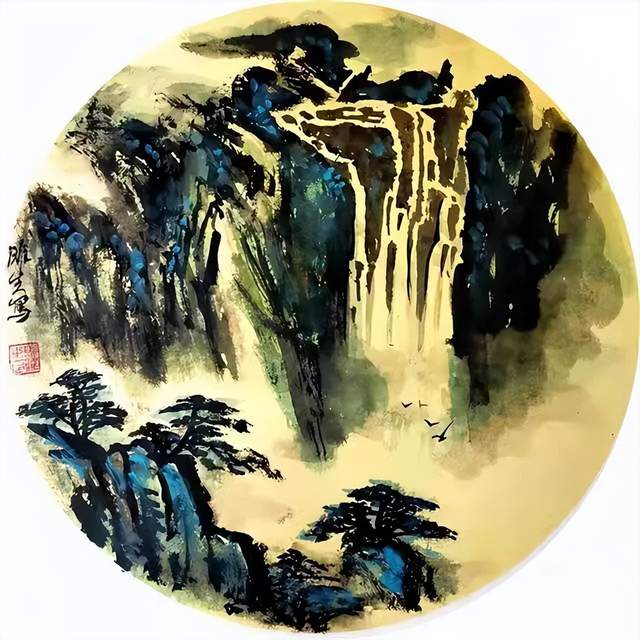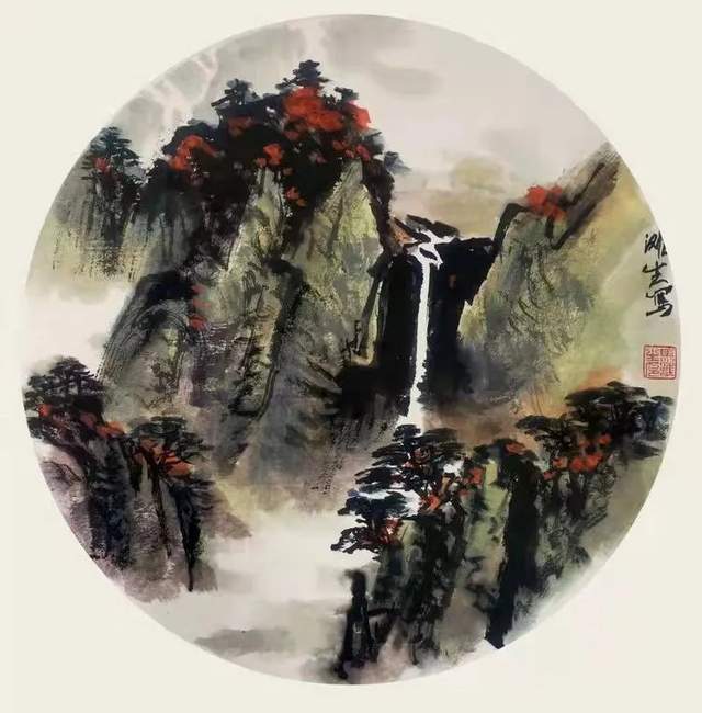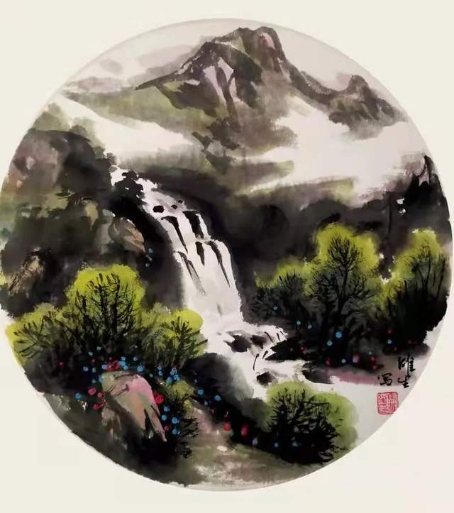 他的山水画师法宋元,把北宗山水的雄奇与南派山水的流丽合二为一,在气势和气韵的塑造上更是得心应手,笔墨随师。执笔勾勒线条流畅无滞,尽显劲健,积墨层层,不蚀不浊,赋色青绿或施重彩,浓淡皆雅,在色不碍墨,墨不碍色的铺陈中,让山水既然得立骨的精神,又拥有传神的风采。一河两岸或是高远飞瀑的哲学构图,让近山矗云霄,近观咫尺千里,远处丘壑幻接天涯,远看不离座外,虚实顾映,生成人心待渡,飞瀑弘志的意象,引人卧游,山水成哲学!