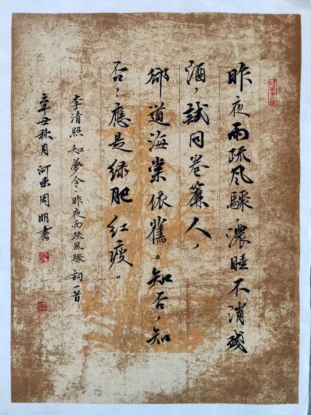 周明,山西太原人,原藉永济,中国人民大学书法硕士研究生。现任山西国际文化交流协会理事,山西省城乡文艺交流协会副会长,山西省农民书画艺术协会副会长,三晋文化研究书画院副院长,王羲之书画院副院长,人民日报神州书画院特聘书画师,国宾礼特供艺术家,形象大使,山西省书协会员。在四十余年的砚海耕耘中,以传统经典为师,勤临苦练,笔耕不辍,形成了清秀隽永,遒劲潇洒的个人风格。尤其在大,中,小楷上的造诣,更是得到了欧阳中石,段成桂以及金运昌等专家学者的高度评价。2009年获中国永乐宫第二届国际书画艺术节百佳奖,以及文化部文华奖。2002年,2015年,2017年,2019年,2021年先后在省会太原,山西朔州市,阳泉市,永济市,运城市等地成功举办个人书法展。其作品不仅得到了社会的好评,同时更被国内外众多机构永久收藏。