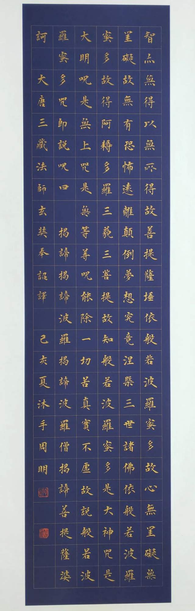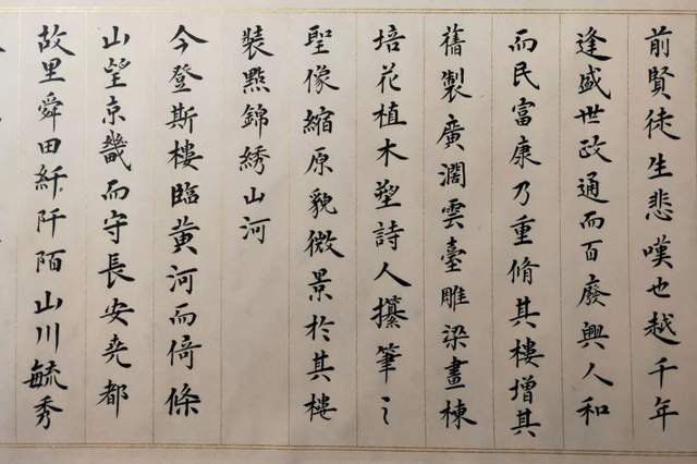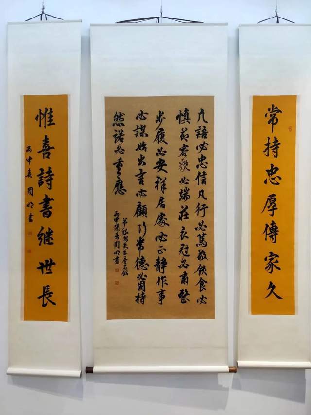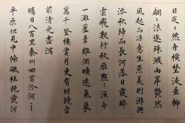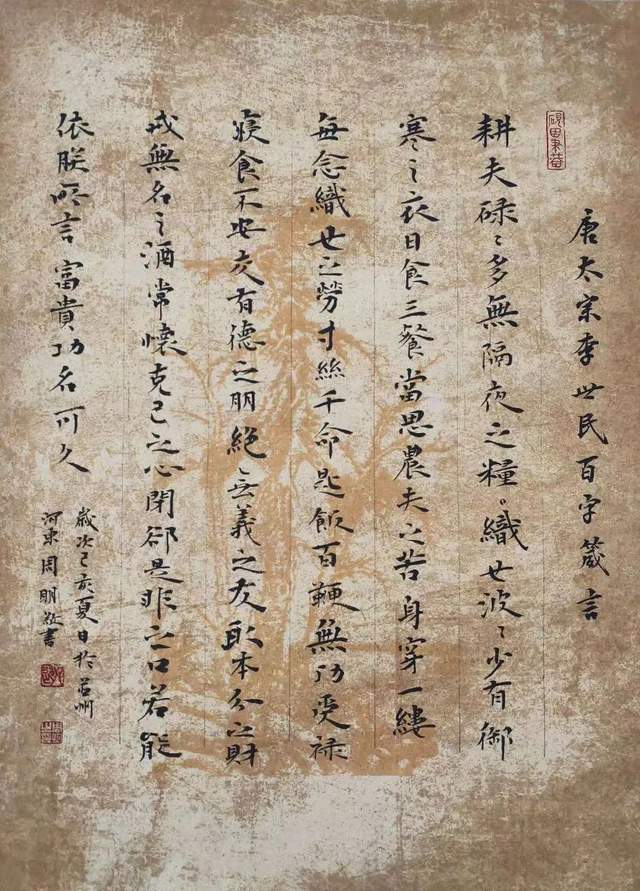 纵横鉴观他的楷书作品,基本上就是中国楷书一部可以真观于眼前的汗青史卷!周明楷书,不仅仅是他追求卓越书法功勋的个人显证,也是楷书深刻影响中国人文化心态、处世哲学的如复旧观。认认真真写字,端端正正做人,心正则笔正!小楷抄经,明心见怀,如《心经》。楷书箴言,触动心田,若《藏书为富》。抑左扬右,生动圆活,是《唐太宗百字箴言》!周明楷书承载着无量极多的文化迅息,成为书法渊妙代不绝人的典范!难怪他的书法作品被广泛收藏,金书锦字能不成和璧隋珠乎?