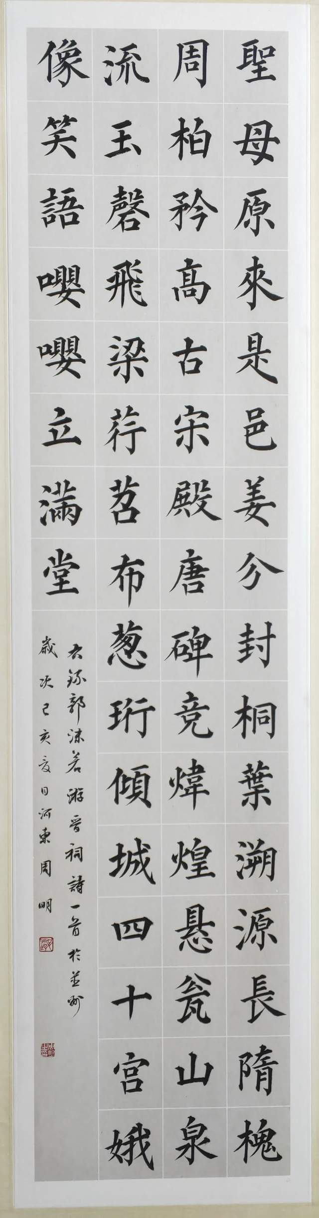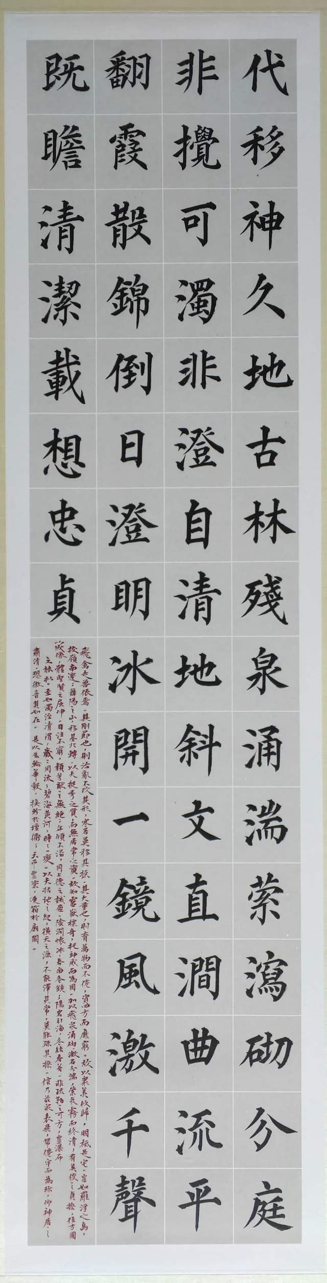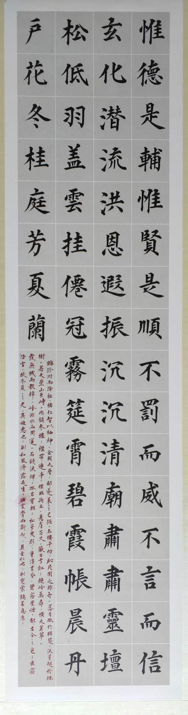 他的楷书涉及到的取法相当宽博,近乎是集成了楷书从魏晋小楷的圆活生动,到大唐楷法的严谨精研,再到明清楷书的精益求精,一路修习而来,系统梳理了小楷、中楷、大楷以致擘窠大字的流变与激变,把“楷法无欺”的功夫历练到了炉火纯青,博涉多优。