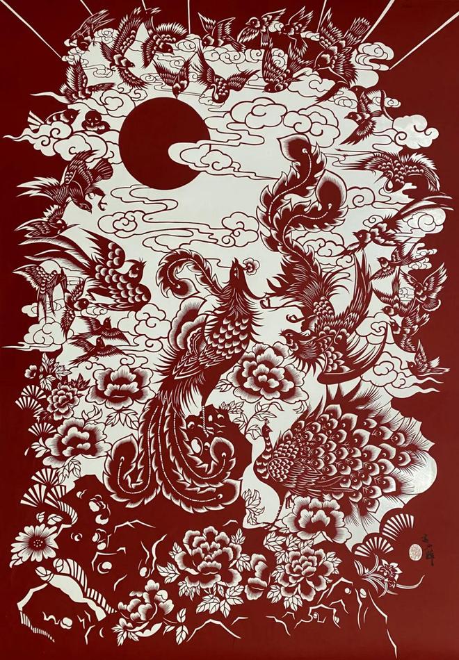 今年2025年是中国民主促进会成立80周年,作为一名民进会员,我想用手中的剪刀裁剪这光辉历程,重温历史,点亮未来。我创作的这幅作品的创意是:以阿拉伯数字80为主体抽象设计,8的开头以电影放映胶片展现历史,牡丹花钩草做连接,把历代的民进创办人物融入其中,0中间包含民进的会标以及成立的时间,时间立足在一朵盛开的牡丹花里面表示繁荣富强。数字8延伸着一条飘带,里面有高山流水、和平鸽叼着橄榄枝,有大海有水仙花(福建省的省花,作者是福建人)底下有舞龙、有丰收的稻谷和福建舰,神州18等航天。背景设计为上海外滩,显示民主促进会成立的地点。作品整体展示了民主促进会80年的峥嵘岁月,表示同心筑梦,一路芳华。
