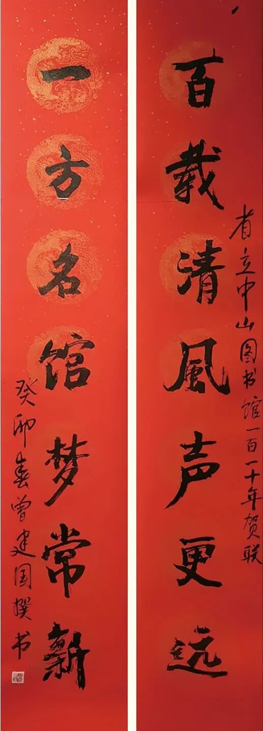 曾建国先生的艺术根基,在于书法与诗词的深厚修养,为绘画注入文魂与墨韵。自古书画同源,书法是中国画的笔墨筋骨,诗词则是画作的意境灵魂。先生深谙此道,数十年笔耕不辍,其书法取法传统,行笔沉稳舒展,墨色变化自然,既见法度,又具风神。而他深耕诗词楹联多年,文思清雅,意境高远,常以自题诗配画,诗与画相映成趣,令画面更富文气与余韵。正如他在《春满圆明园》融水法牡丹图中,自题“只缘善解东风意,鸿运吉祥国色香”“浩荡春风圆满梦,新蕾跃跃竞开来”,诗句与丹青互为映衬,既咏牡丹之盛,又抒家国情怀,让画面跳出视觉表象,多了文学意境的深度。正是这份诗、书兼修的学养,让他的绘画脱去匠气,落笔便见风骨,处处可见书法笔力与诗意内涵,真正做到了以书入画、以诗润画。