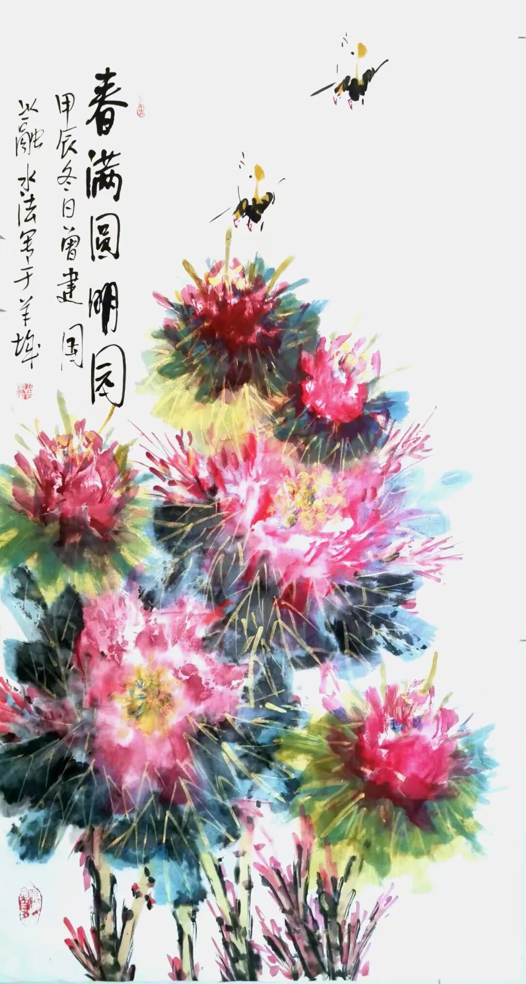 中国传统艺术的至高境界,向来是诗、书、画相融共生、互为表里。唯有文墨兼修、才情兼具,方能跳出单一技法的桎梏,成就独具风骨的艺术格局。曾建国先生深耕艺林数十载,以花鸟画为根基,兼善书法、诗词与花卉写意,更以独创融水法写牡丹享誉画坛。他守传统文脉之根,铸当代审美之魂,以诗为心、以书为骨、以画为境,笔下无论是雍容牡丹、清雅梅竹,还是写意花鸟、劲健书法,皆藏真情实感,尽显文人逸气,在当代艺坛走出了一条自成一格、意蕴丰厚的艺术之路。