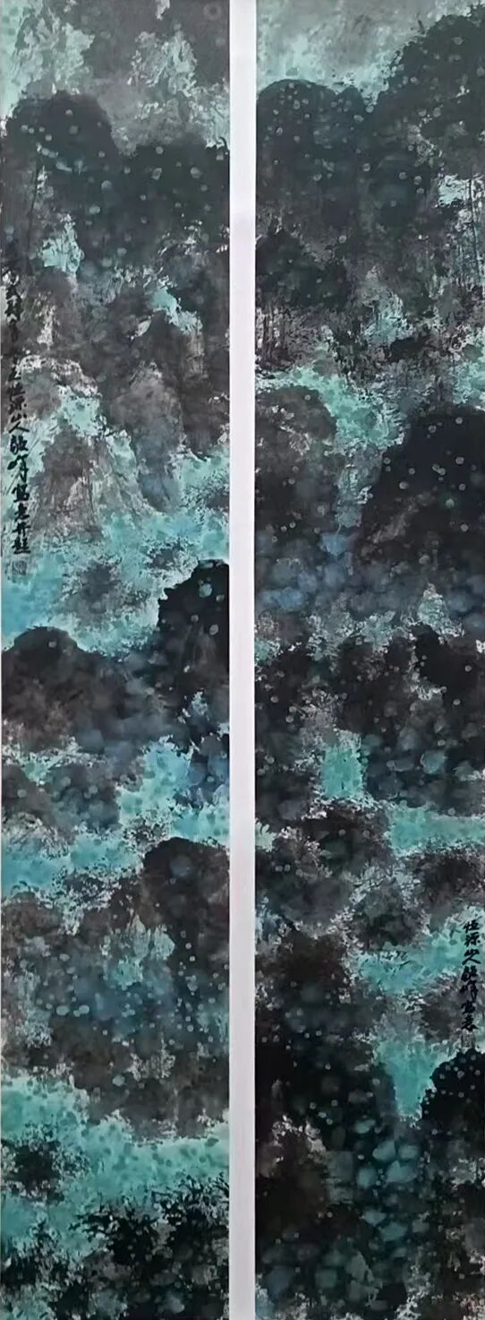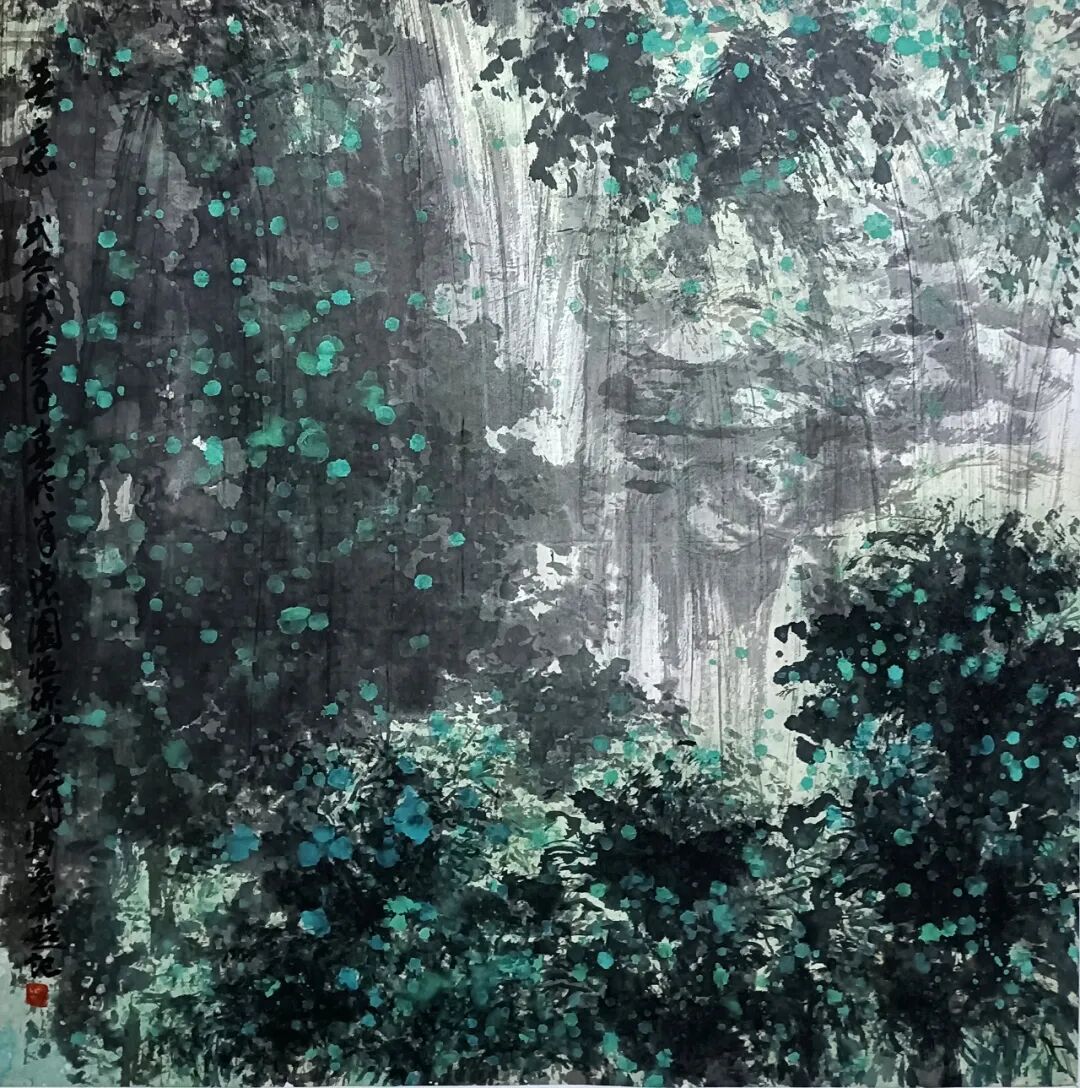 “笔参造化,学究天人。” 欣赏刘毅峰先生的作品,尤其是体现其独具艺术特色的“散锋点彩山水国画”中,能感受到深邃的传统意蕴与生动的现代表现力。他的“散锋点彩技法”创造性地将中国画艺术的“写意精神”与西方色彩美学理论相融合,在创造性地发扬传统“笔墨意趣”的同时,大胆引入现代视觉艺术语言。其“散锋点彩山水国画”作品既有体现了中国画气韵生动的“意象美”,又有体现融入了西方绘画的空间构成与色彩张力,形成了独具特色的“中西融合”以及很个性化表达的艺术风格,而又不失“中国艺术精神”!他以“散锋笔法”破传统“皴法”之拘,用“点彩墨色”解传统赋彩之固,在看似随意的笔墨点彩间构建出山水的韵律与空间的意象。其画既得宋元山水的幽远意境,又有明清“文人写意画”的艺术精神,更赋予其现代视觉艺术的层次与节奏的美学趣味,在虚实、疏密、浓淡、明暗、动静以及“点线面”等对比关系之间,形成了一种既扎根传统又具有现代气息的独特的山水画艺术语言。其山水画笔墨之间似乎蕴含着哲学思考与美学理想,追求“理趣”和意境深远的“内美”,并有注重于“画气不画形”的大写意艺术审美倾向,通过笔墨和点彩的艺术语言传达出对于传统文化与现代艺术的深度理解。