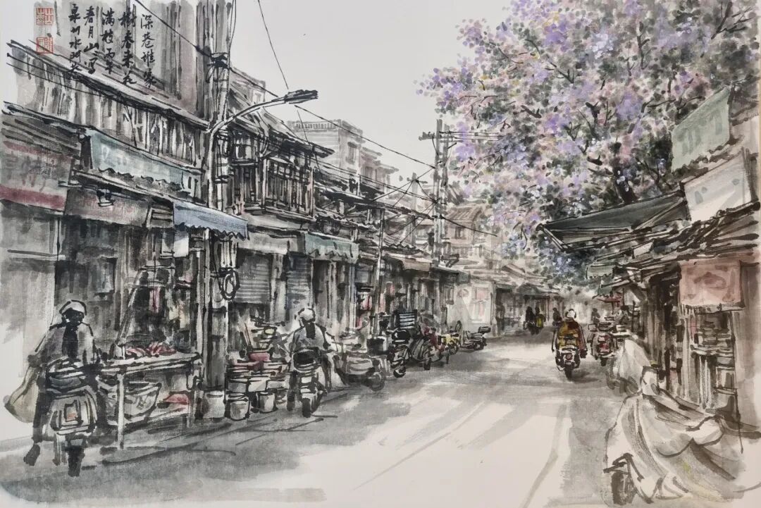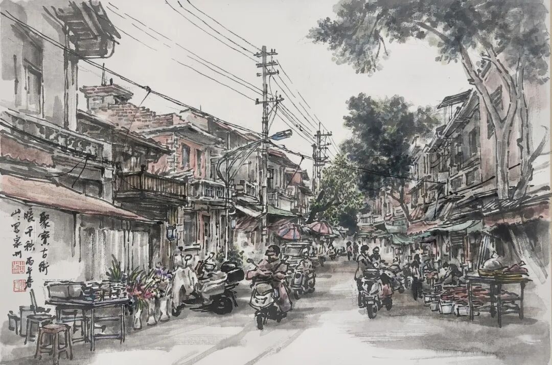 相较于当下审美多元纷杂、求新猎奇的画坛风气,画家陈山山先生始终以沉静之心坚守艺术本真,将传统笔墨与地域人文风物相融,以独具人文温度的丹青面貌,在当代写意画坛中树立起鲜明的艺术标识。他不逐浮华,不尚雕琢,专注于以笔墨记录城市根脉,以真情描绘乡土烟火,走出了一条师古而不泥古、接地气而有格调的艺术道路。笔墨藏古韵,景致见初心,街巷入画,情怀盈纸,于寻常市井间绘出诗意天地,于淡墨清痕中彰显人文情怀!