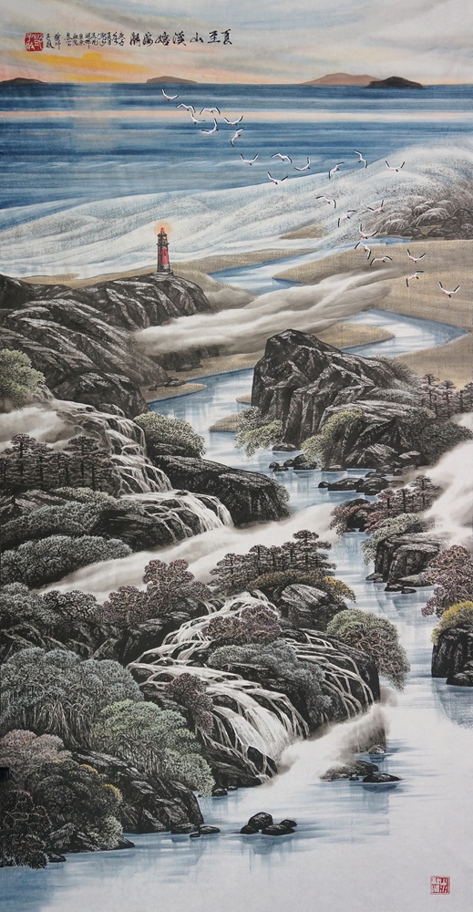 岭南不冬系列-夏至山溪嬉海潮 2020年240×126cm - 北京国画 - 商城展示